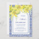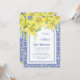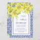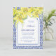 Este convite maravilhosamente desenhado apresenta uma ilustração impressionante da cor d'água de uma flor de lírio amarela e um quadro azul de azulejos cerâmicos azulejo. No fundo, há uma foto da sua escolha. Você pode personalizar facilmente o texto e incluir a idade do celebrante para torná-lo ainda mais personalizado. Compartilhe a alegria com os seus amigos e família e faça deste aniversário milestone para se lembrar!
