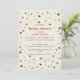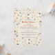 Modelado no azulejo terrazzo italiano, este chá de panela tem uma aparência divertida e festiva de flocos de confete em tons de terra quente com uma abertura de cor. Estes convites têm um aspecto limpo e moderno.