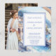 Convite de casamento mediterrâneo na Costa Amalfitana Itália, com azulejos azuis, flores e rosas, em aquarela e moldura azul. Basta mudar com sua foto no verso.