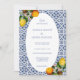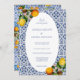 Convite de casamento do Mediterrâneo Itália Costa Amalfitana Limão, com azulejos azuis, limão e moldura oval.