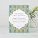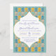 Azulejo moderno marroquino azul, amarelo e ouro, convite personalizado para casamento da arte marroquina. Este produto pode ser facilmente personalizado. Se precisar de ajuda para a personalização do produto ou se precisar de produtos correspondentes, por favor contacte-me através do Zazzle.