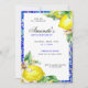 Convite Azulejos Mediterrâneos de Limão Amarelo e Azul Aqu
