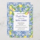 Azulejos portugueses, limões aquosos, mediterrâneos, azuis, verão, convite por padrão. Elegante, lindo, convites de chá de panela. Eu mesma pintei água-colorida. Personalize-o com seus detalhes.