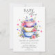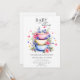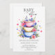 Uma ilustração encantadora de aquarela de uma pilha de xícaras de chá em rosa, amarelo e azul, com flores silvestres coloridas e luxuosas e verde ao redor, assim como borboletas coloridas decoram este adorável convite de chá de fraldas de chá de jardim com flores silvestres e borboletas. O título, "Baby in Bloom", com elegante e moderna caligrafia, coloca um toque extra no título desse convite de chá de menina que é perfeito para uma festa de chá de jardim em primavera ou verão.
