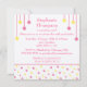 Avise aos seus convidados que uma doce menina está a caminho com este design de um lindo bloco de bebê em amarelo brilhante, rosa e prata.