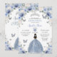 Celebrate in style with this elegant invitation card featuring a hand-drawn watercolor design. Adorned with beautiful baby blue, and white rose florals, a girl in a soft baby blue dress, delicate butterflies, and silver accents, this invitation is perfect for a birthday party, sweet sixteen, quinceañera, or any special occasion.