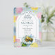 A changeable color oval has all the details of the invitation in a blue and pale blue color.