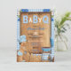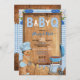 Convite Baby Boy Blue Gingham Wood Flowers Baby Q Barbecue