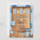 Convite Baby Boy Blue Gingham Wood Flowers Baby Q Barbecue