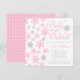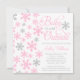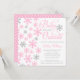 Um convite de chá de bebê com tema de inverno adorável. Apresentando uma fonte manuscrita com a frase "Baby Está Frio Lá Fora", com flocos de neve rosa e cinza. Moderno e fofo para um chá de bebê de menina.