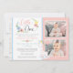 Convite Baby Giraffe First Birthday Floral Photo Collage