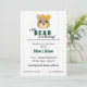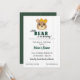 Tem uma menina no caminho? Destinado a ser um urso? É o tema perfeito para um chá de fraldas! Este belo convite é feito em ouro verde e amarelo com um adorável urso bebê - completo com arco - no topo. Personalize com os detalhes do seu partido, incluindo os nomes dos amigos que hospedam o evento. O verso é a madeira verde que corresponde ao fundo da frente.