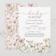 The front design showcases graceful typography paired with blush and neutral tones, while the coordinating floral pattern on the back adds a refined, cohesive finish. Ideal for spring and summer gatherings, this botanical baby shower invitation works beautifully for baby girl showers, neutral baby showers, and outdoor garden parties.
