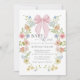 Celebrate a sweet new beginning with this charming floral baby shower invitation, designed with soft romance and timeless elegance. Featuring a delicate watercolor floral wreath in pastel pinks, blush, peach, buttery yellow, and soft greenery, the design is beautifully accented with a graceful pink bow for an extra touch of sweetness. Elegant typography balances the playful florals, creating a refined yet whimsical look perfect for honoring a mom-to-be. Ideal for spring and summer baby showers, garden parties, floral-themed celebrations, and “baby in bloom” events, this invitation sets the tone for a joyful, heartfelt gathering and makes a lovely keepsake for years to come.