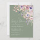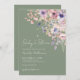 The design showcases a beautiful arrangement of watercolor wildflowers and greenery in the top right corner. Soft pastel tones of blush pink, dusty rose, lilac, lavender, and fresh green leaves stand out gently against the sage green background, creating a delicate and whimsical garden-inspired look.
