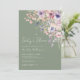 Baby in Bloom Baby Shower Invitation. Honor the parents-to-be with this enchanting and timeless design featuring sage green backgrounds on both the front and back for a calm, natural, and elegant look. At the top, “Baby in Bloom” is displayed in crisp white fonts and can be personalized or removed for a clean, minimal feel.