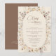 This sophisticated "Baby in Bloom" baby shower invitation sets a serene and elegant tone for your celebration. The front features a charming floral wreath of soft watercolor wildflowers in a calming, gender-neutral palette of ivory, muted taupe, and soft blush. All event details are beautifully centered within a classic arched oval panel, ensuring clarity and readability. The reverse side complements the design with a solid, rich brown backing that adds depth and warmth, and includes a convenient QR code for guests to instantly access your registry, event directions, or RSVP information. This design is the perfect choice for a sophisticated spring or fall shower, offering timeless elegance and modern functionality. Customize the text with your event details to create a truly beautiful announcement for your celebration! Design by Anna Szalacha © Happy Ann Designs.
