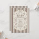 Whimsical Baby is Brewing Baby Shower Invitation. Celebrate the sweetest little arrival with this charming “Baby is Brewing” coffee-themed baby shower invitation. Designed with elegant neutral beige - latte tones, delicate vertical cafe stripes, and a cute coquette bow accent, this invitation features whimsical coffee-inspired illustrations including a moka pot, coffee cup, coffee beans, and baby bottle with milk for a cozy café-style bebe shower.