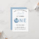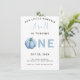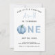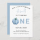 Cartão de convite de aniversário bonito com ilustração de aquarela de PUMPKIN azul. O texto diz "NOSSA PEQUENA PUMPKIN".