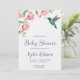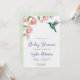 Convite baby shower invitation with pink flowers and bird
