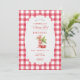 This charming invitation is perfect for celebrating a baby's first birthday! The design features a sweet cherry motif on a classic red gingham pattern, creating a delightful and festive look for your child's special day. It's a delightful way to invite family and friends to share in the joy of this milestone event.