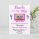 Este é um belo convite de fim de semana de bachelorette no tema dos anos 90 com fita cassete retrorreflectora com detalhes de viagem e fim de semana.