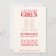 Chamando todas as noivas de vaqueiro para ser e seu pelotão! Prepare-se para encher seus calcanhares e abraçar o espírito selvagem de Nashville com o nosso Convite Bachelorette "Vamos Go Girls"! Este belo convite captura a essência da energia vibrante de Nashville e do charme country, apresentando botas ousadas e brutas de caubói vermelho como a peça central. Reúna suas meninas e as convide para uma boa diversão em Music City. Com sua design divertida e na moda, este convite dá o tom para uma festa de solteira cheia de risos, danças e memórias inesquecíveis. As botas vermelhas do cowboy simbolizam o espírito da aventura e evocam um sentimento de confiança e de empoderamento. Abrace as vibrações honestidas de Nashville enquanto celebra os núpcias da noiva-a-ser. Quer você esteja atingindo os famosos bares honky-tonk de Nashville, se entregando à culinária do Sul, ou explorando os marcos icônicos da cidade, este convite promete uma experiência inesquecível de solteira. Personalize o convite com todos os detalhes essenciais, desde a data, hora e local até quaisquer solicitações especiais ou códigos de vestimenta. É uma maneira perfeita de colocar o palco e deixar sua equipe de vaqueira animada pelas festividades temidas em Nashville que esperam. Então, coloque suas botas vermelhas de cowboy, pegue suas namoradas, e vamos pintando a cidade de vermelho em Nashville! Esta "Vamos Go Girls" Bachelorette Invitation é seu ingresso para um bom momento, onde são feitas memórias e celebradas amizades. Sim!