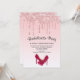 Um convite moderno à festa de solteira da lágrima. O plano de fundo tem uma imagem de brilho suave ao longo do topo. O resto do fundo é um delicado gradiente cor-de-rosa pastel. Um par de estiletes cor-de-rosa alto no fundo.