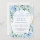 Convite Bachelorette Geométrica Dourada Floral Dusty Blue