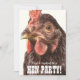 Convite totalmente personalizável para a festa de solteira noturna de uma menina, frequentemente chamada de "Festa Hen" Convide todos os pintinhos para comemorar com esta galinha fofa! Este convite à noite para as senhoras, que se aproxima, mostra uma fotografia de um jovem frango vermelho com pente vermelho-laranja brilhante e wattles. Perfeito em representar a jovem noiva. Coordenando o texto colorido do lado inverso e vários campos de texto personalizáveis para se adequar ao seu conjunto.