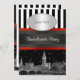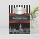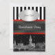 Skyline BW Black & White Stripe Invitation Red Ribbon Collection - Convite à Festa de solteira Convites personalizáveis e acessórios com uma vista icônica do horizonte de Londres, apresentando uma foto de aparência gravada a preto e branco de Big Ben contra um céu estrelado. Eles também apresentam um padrão de fundo listrado preto e branco e uma fita vermelha e preta, bem como uma etiqueta de gradiente branco com a escolha de uma moldura de cor prateada ou dourada. Remova o quadro que você não quer. Este produto faz parte de um conjunto de designs correspondentes que são facilmente personalizáveis para muitas ocasiões e eventos. Se você precisar de placas RSVP separadas, Notas de agradecimento, Carimbos, ímanes ou outros acessórios, por favor verifique nossas outras listas. Se você não vir um produto correspondente ao qual você está interessado, ou gostaria de ver esse design em cores diferentes, com elementos de outros designs, ou com fotos diferentes do NYCisMyMuse que você vê em nossa loja, entre em contato conosco e ficaremos felizes em personalizar um design para você! Observe que este é um design gráfico e não contém tecidos, metais, gemas ou relevo. 2013 ©NYCisMyMuse