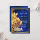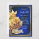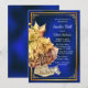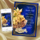 Convite de baile de tênis azul royal e dourado com vestido dourado bonito e tênis em um fundo azul royal e dourado lindo. Você pode alterar o texto conforme necessário para o seu evento. Imprima em papel brilhante para obter os melhores resultados.