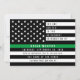 Este convite de festas de aposentadoria apresenta uma bandeira americana de linha verde branca e preta, junto com um nome e todos os detalhes do seu partido para que você personalize. Perfeito para aqueles que se aposentam do exército, patrulha de fronteiras, guardas florestais e guardas. A parte de trás do cartão está preta. Projetado pelo artista mundialmente famoso ©Tim Coffey.