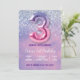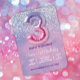 Convite Balão de aniversário de 3 anos rosa e roxo