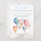 Balão de Ar Quente é um chá de fraldas de menino. Estilo pintado à mão de água com estilo bonito e sonhador balões de ar quente voando alto em celebrações na frente da placa com texto fácil de ler e espaço de sobra para você adicionar seus próprios detalhes, como o nome dos recém-nascidos e a localização da parte chá de fraldas e do registro. Este charmoso design capta o espírito alegre de acolher um novo bebê e dá um tom caprichoso para sua celebração especial.