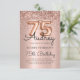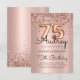 Torne a sua celebração de 75 anos inesquecível com este maravilhoso Rosa Dourado Convite para Balões. Projetado com balões de número de folha de ouro rosa, caligrafia por na moda, e uma estrutura de brilho brilhando, todos colocados contra um fundo metálico cor-de-rosa e suave. Uma escolha moderna e elegante para um aniversário marcante cheia de glamour e sofisticação.