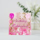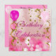 Convite Balão de Estrelas Douradas Rosa de Celebração de f