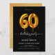Foil Balão Negro e Dourado 60º Convite de Aniversário. Comemore em estilo com este convite de aniversário moderno e elegante, com sotaques negros e dourados e uma ilustração de balão de folha de papel chico. Perfeito para marcar um grande momento de vida, a design combina sofisticação com um toque festivo. O traçado elegante melhora seu apelo contemporâneo, enquanto os detalhes luxuosos do ouro exudem elegância do eterno. Ideal para aniversários de marco, este convite dá o tom para uma celebração inesquecível, misturando a estética moderna com o glamour clássico.