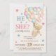 Convite Balão de Urso Azul Rosa Azul e Estrelas Revelação
