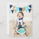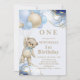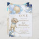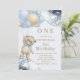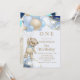 Convite Balão de Urso Branco Abstrato Azul Foto Dourada