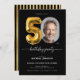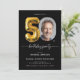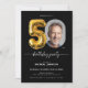 Balão Negro Dourado 50º Convite de aniversário. Comemore em estilo com este convite de aniversário moderno e elegante, com sotaques negros e dourados e uma ilustração de balão de folha de papel chico. Perfeito para marcar um grande momento de vida, a design combina sofisticação com um toque festivo. O traçado elegante melhora seu apelo contemporâneo, enquanto os detalhes luxuosos do ouro exudem elegância do eterno. Ideal para aniversários de marco, este convite dá o tom para uma celebração inesquecível, misturando a estética moderna com o glamour clássico.