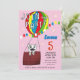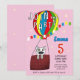 Torne o aniversário do seu pequeno ainda mais especial com este adorável Convite de Aniversário do Gato Balão de Ar Quente! Com uma adorável gatinha de desenho animado flutuando em um balão colorido contra um céu rosa cheio de estrelas brancas, este convite define o tom perfeito para uma celebração divertida e alegre. A tipografia divertida, as cores vibrantes e o design caprichoso agradarão a convidados de todas as idades. Totalmente personalizável com os detalhes do seu evento, é a maneira perfeita de convidar amigos e familiares para o dia especial do seu filho!