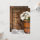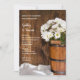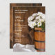 Celebre que está noiva de se casar e se casar e convidar convidados com o Balde informal, mas elegante, de Wooden e o Convite para Festas de noivado da Marinha Branca. Este convite à festa de noivado de rancho personalizado, relaxado e rústico, apresenta uma fotografia floral, ligeiramente melhorada, de um balde de madeira repleto de flores margaridas brancas e de um fundo de madeira de celeiro de castanho.