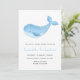Um pequeno a caminho com este convite de chá de fraldas sob o tema do mar, apresentando baleia bebê em aquarelas moles azuis.