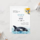 Convite de aniversário de Baleia Orca. Baleia do tempo... pássaro, sol.