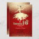 Convite Ballerina, Dourada Confetti Glitter Red Sweet 16