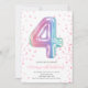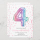 Convite do Baloão Arco-íris Número do 4º Aniversário da Festa da Menina