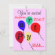 Balões de aniversário voadores coloridos incluindo vermelho, azul, amarelo. 21 ruas de parto ou personalizar para qualquer idade. Rosa claro com cartas do Partido escritas em balões. Inserir detalhes no verso em texto vermelho, preto e verde em fundo branco. Design de Arte Original por TamiraZDesign.