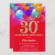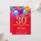 Surpresa aniversário de 30 anos Vermelho e Dourado Balões Coloridos e Confetti Convite. Para mais personalização, clique no botão "Personalizar" e use nossa ferramenta de design para modificar este modelo.
