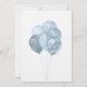 Um fundo branco. Decorado com pingos de brilho azul claro, aparência de pingar tinta e balões. Personalize e um nome e detalhes da festa.